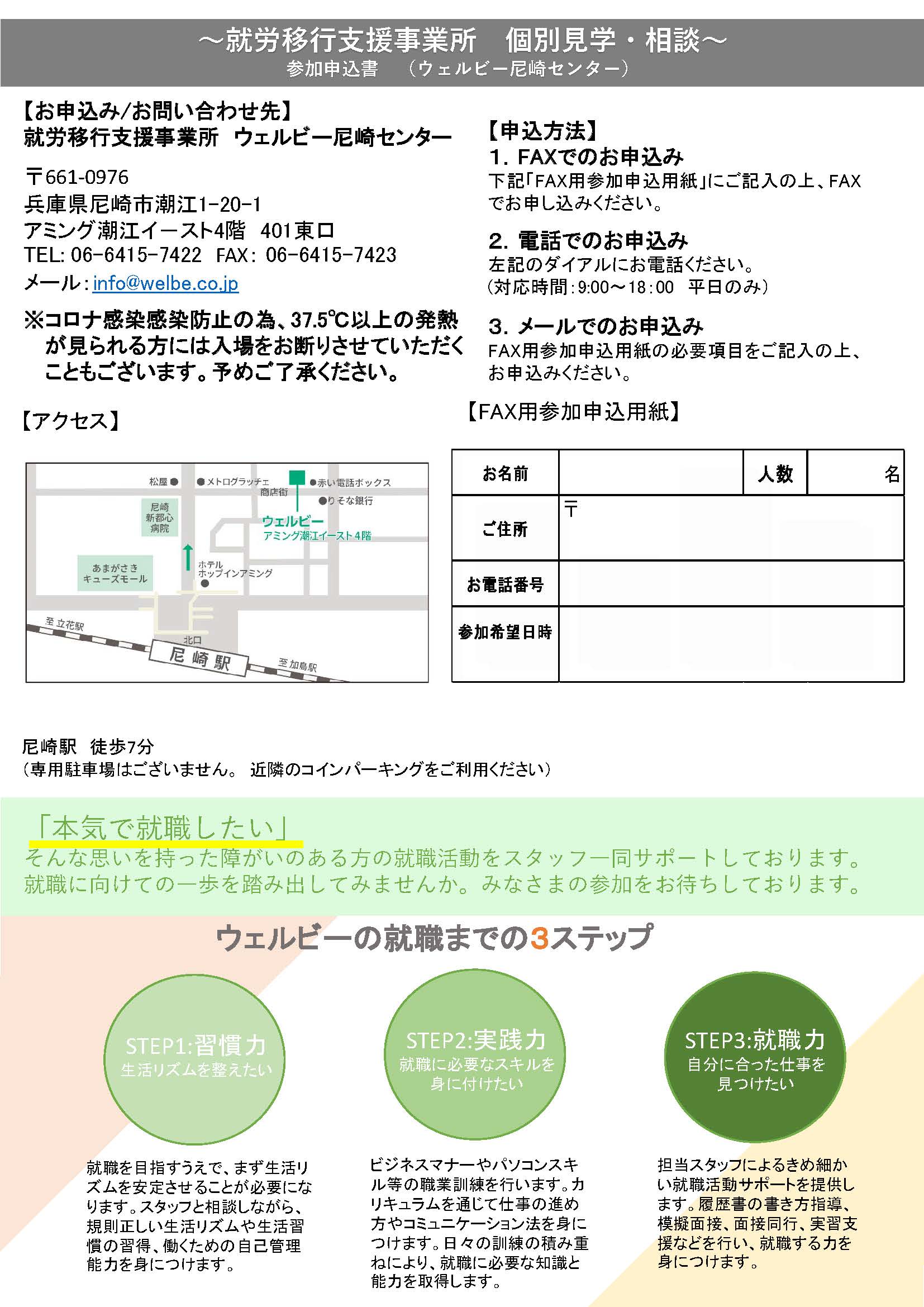 ウェルビー尼崎センターでは、随時見学や体験を受け付けております。