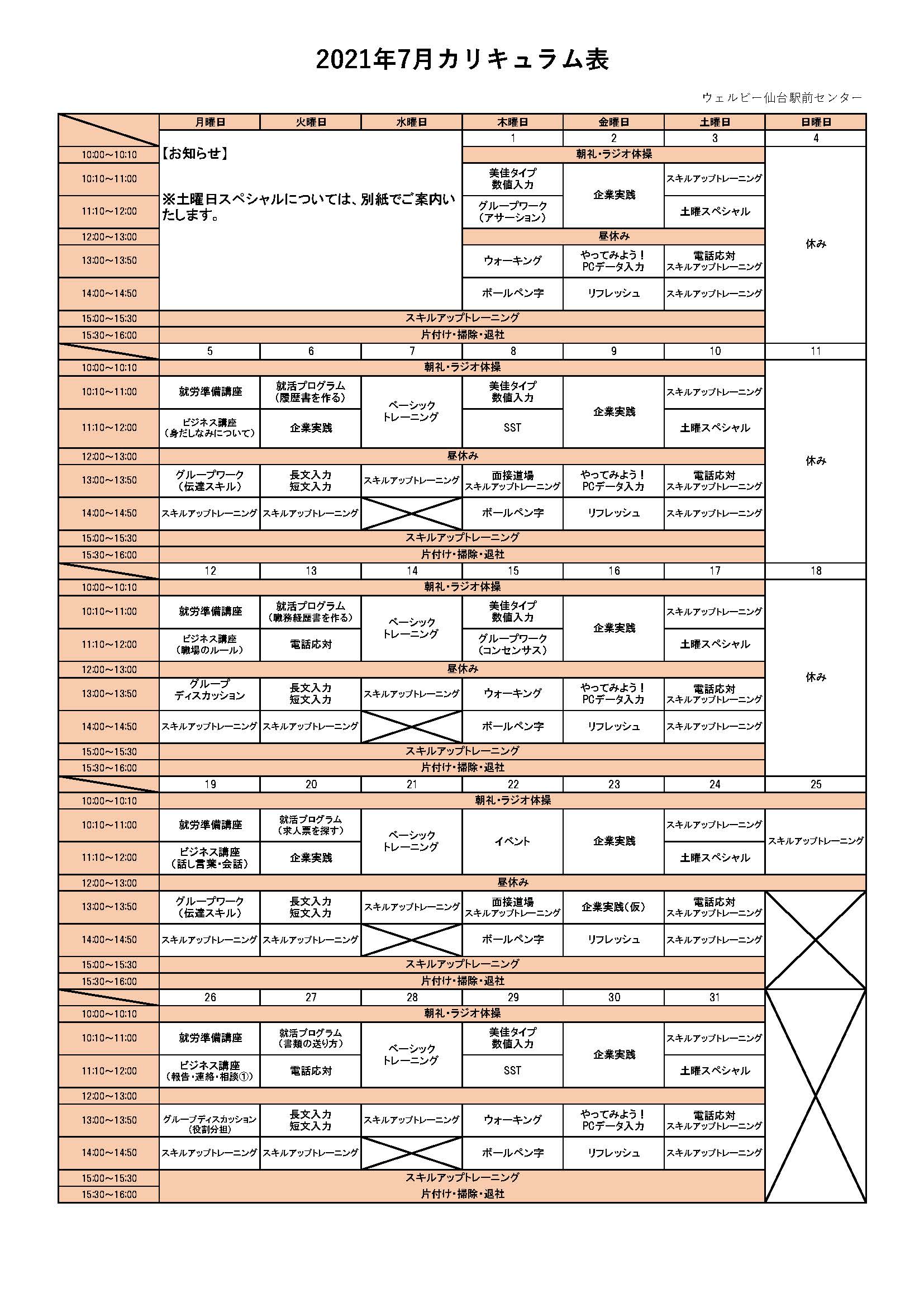 7月のカリキュラムと、7月土曜スペシャルの案内です!