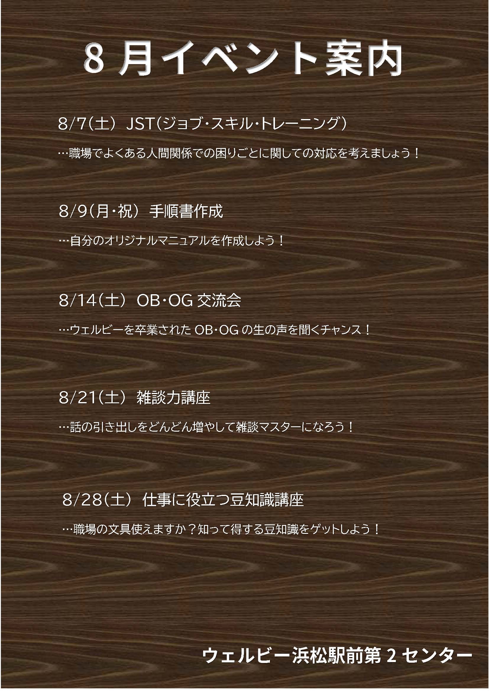 【浜松第2】8月のイベント紹介