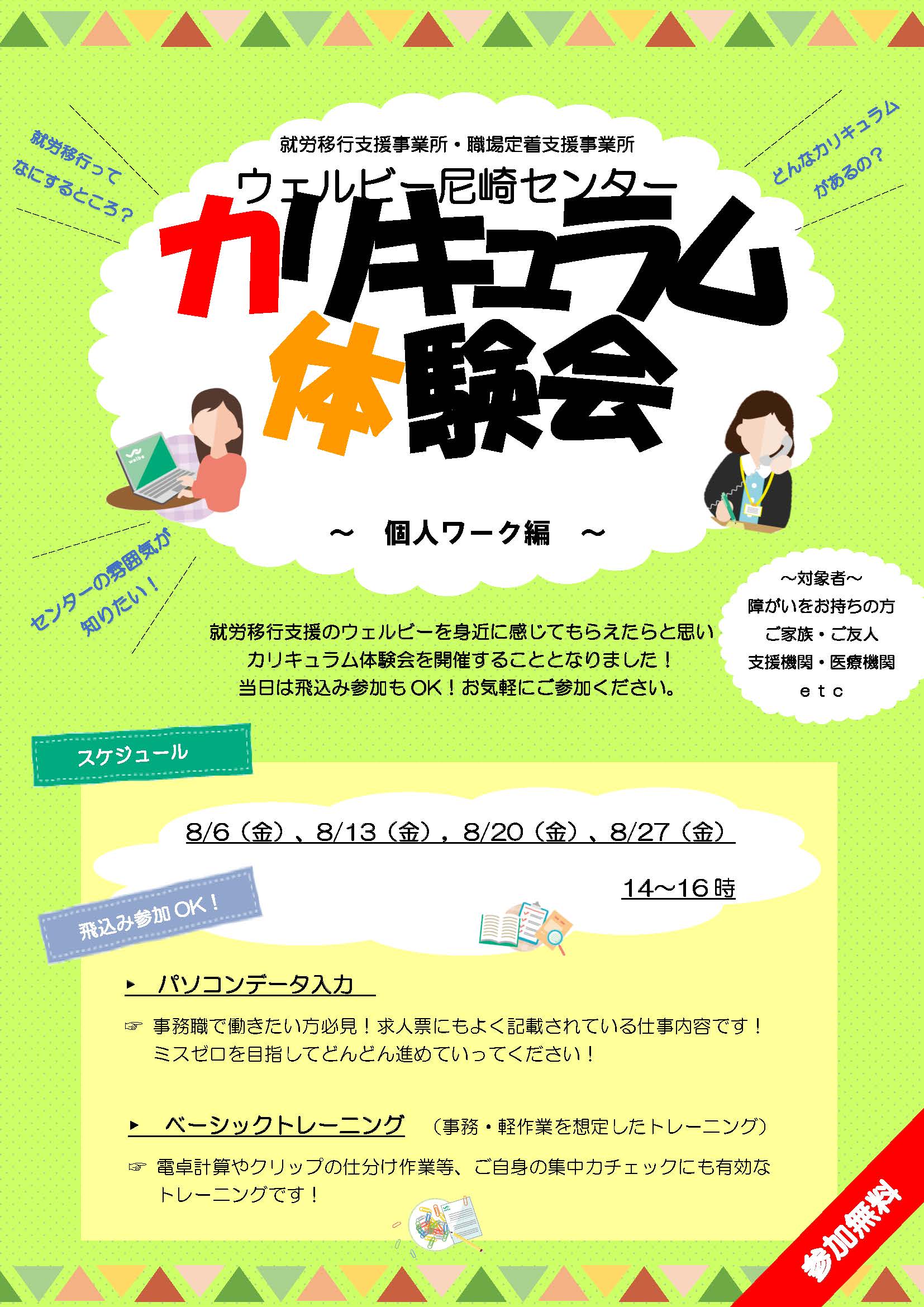 8月は、主にパソコンのデータ入力やクリップのピッキング等の個人作業の体験会を実施予定です!