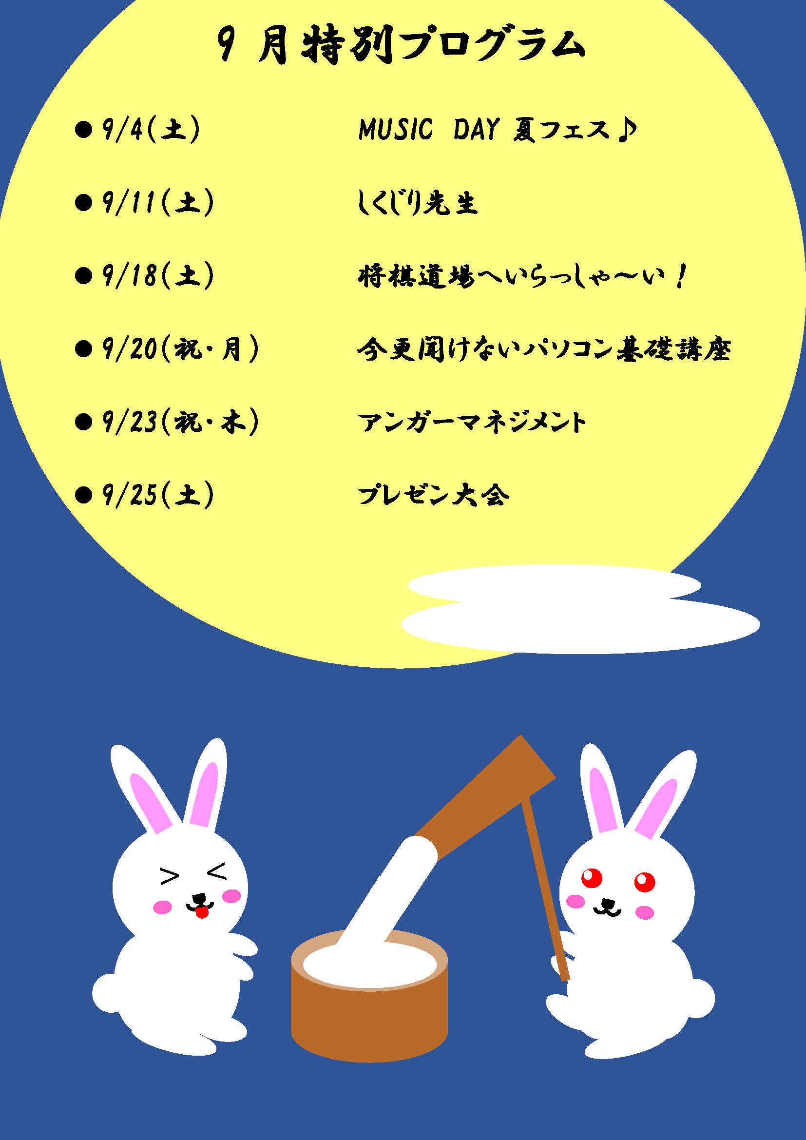 9月といえば十五夜ということで利用者様がかわいいレイアウトを一から考えチラシを制作頂きました。