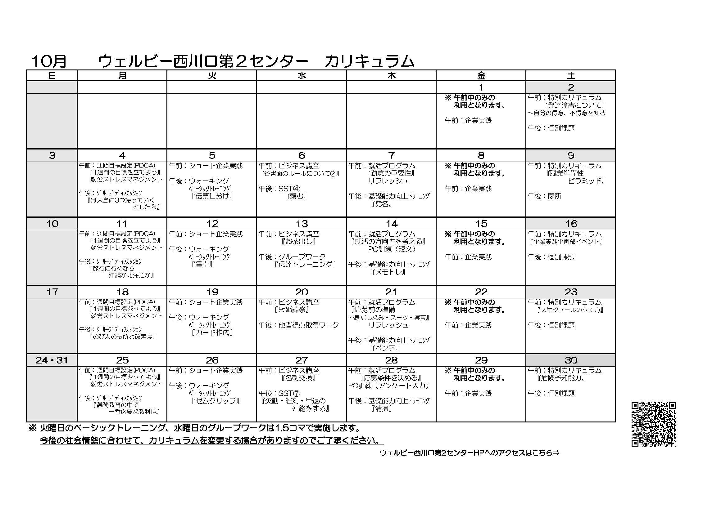 では、10月のカリキュラムのご紹介です。