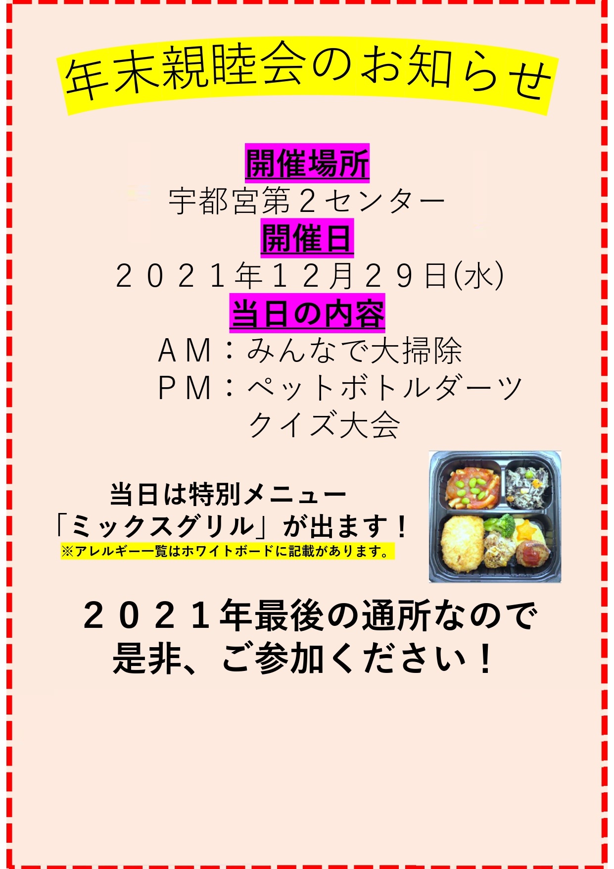 今年も残すところ僅かとなりました。気持ち良く新年を迎えられるよう体調を崩さず元気に過ごしたいですね(^^♪
