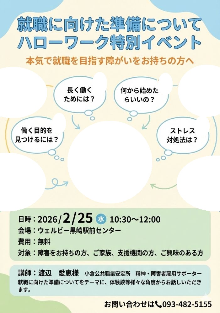 今回は2月25日に開催するイベント「就職に向けた準備について ハローワーク特別イベント」の