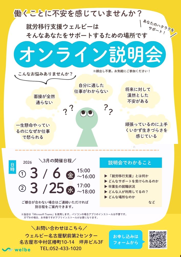 「就労移行支援ってどんなことができるのか」「ウェルビーがどんなところなのか」、