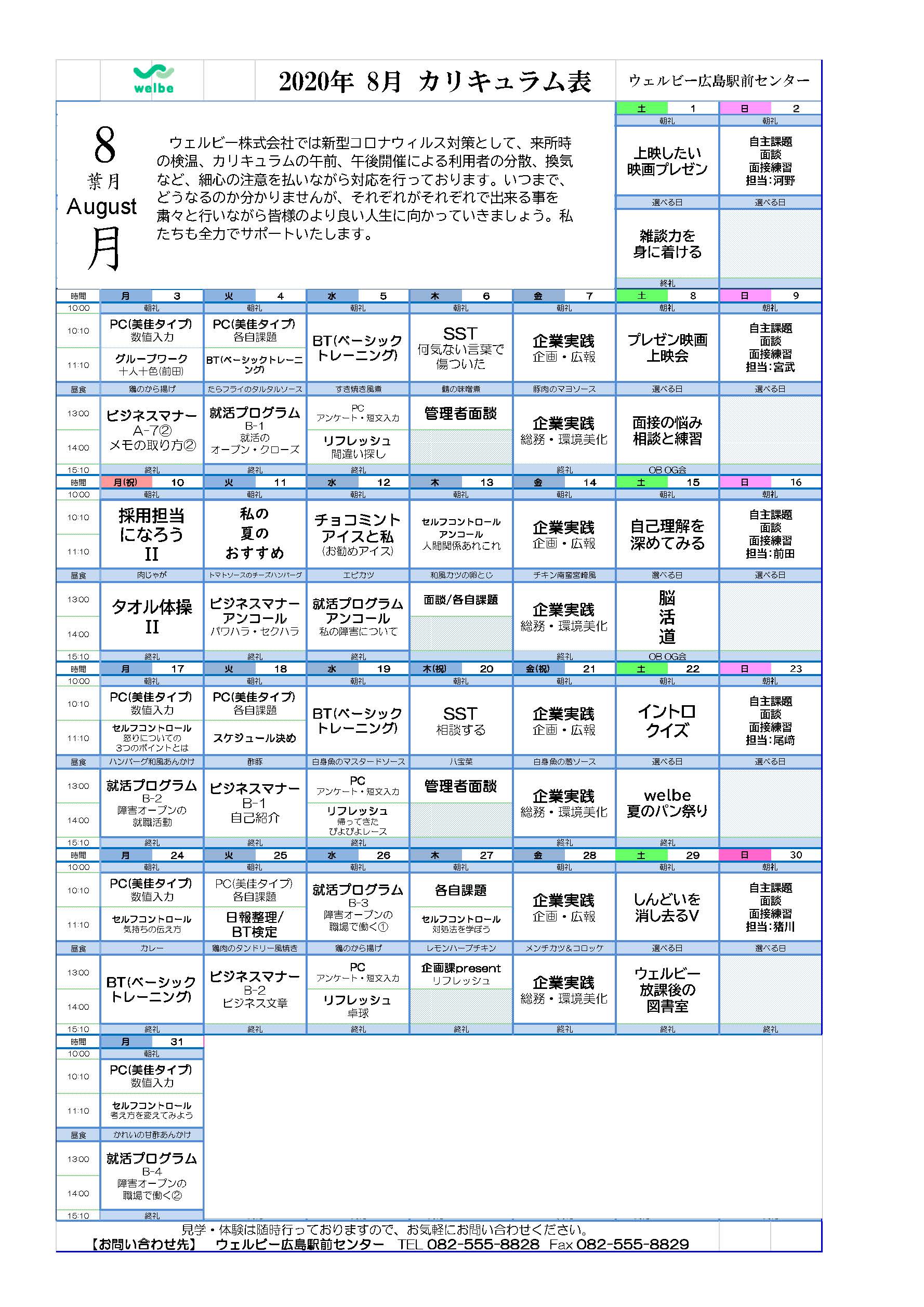 ウェルビー広島駅前センターカリキュラム人気ナンバー1の企業実践の良さを各関係機関の方や利用を考えている方に伝えたいということです。