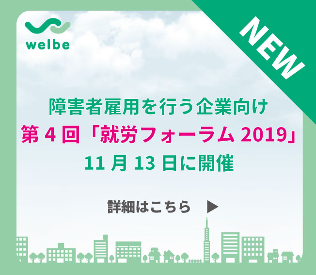 新着情報 トピックス 【ニュースリリース】第4回「就労フォーラム2019」を11月13日に開催 Read more. 埼玉県14拠点目となる「ウェルビー草加駅東口センター」を9月開所予定 Read more. « 前へ 1 … 17 18 19