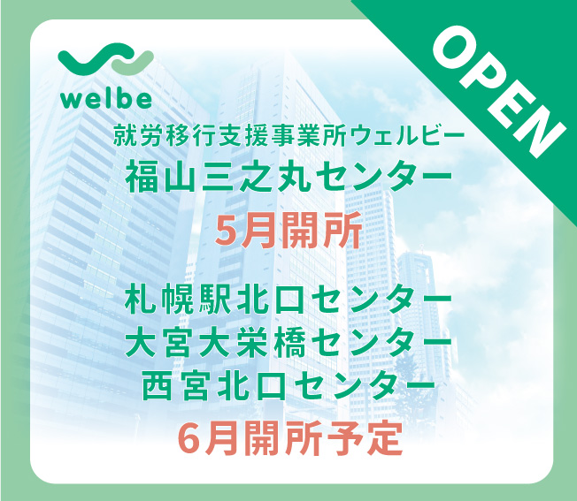 新着情報 トピックス 就労移行支援事業所ウェルビーで5月に1センター開所、6月に3センター開所予定 Read more. 学生向けページ「ウェルビーキャンパス」サービスサイト公開のお知らせ Read more. 就労移行支援事業所ウェルビーで4月に1センター開所、5月に1センター開所予定 Read more. 就労移行支援事業所ウェルビーで4月に1センター開所予定 Read more. 自立訓練(生活訓練)事業所ウェルビーチャレンジで2月に1センター開所 Read more. 自立訓練(生活訓練)事業所ウェルビーチャレンジで2月に1センター開所予定 Read more. « 前へ 1 … 6 7 8 9 10 … 19 次へ»